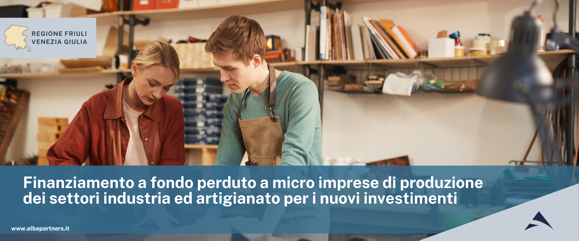 Finanziamento a fondo perduto a micro imprese di produzione dei settori industria ed artigianato per i nuovi investimenti Regione Friuli Venezia Giulia