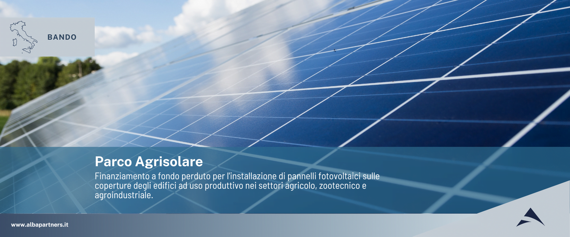FINANZIAMENTO A FONDO PERDUTO PER L’INSTALLAZIONE DI PANNELLI FOTOVOLTAICI SULLE COPERTURE DEGLI EDIFICI AD USO PRODUTTIVO NEI SETTORI AGRICOLO, ZOOTECNICO E AGROINDUSTRIALE.