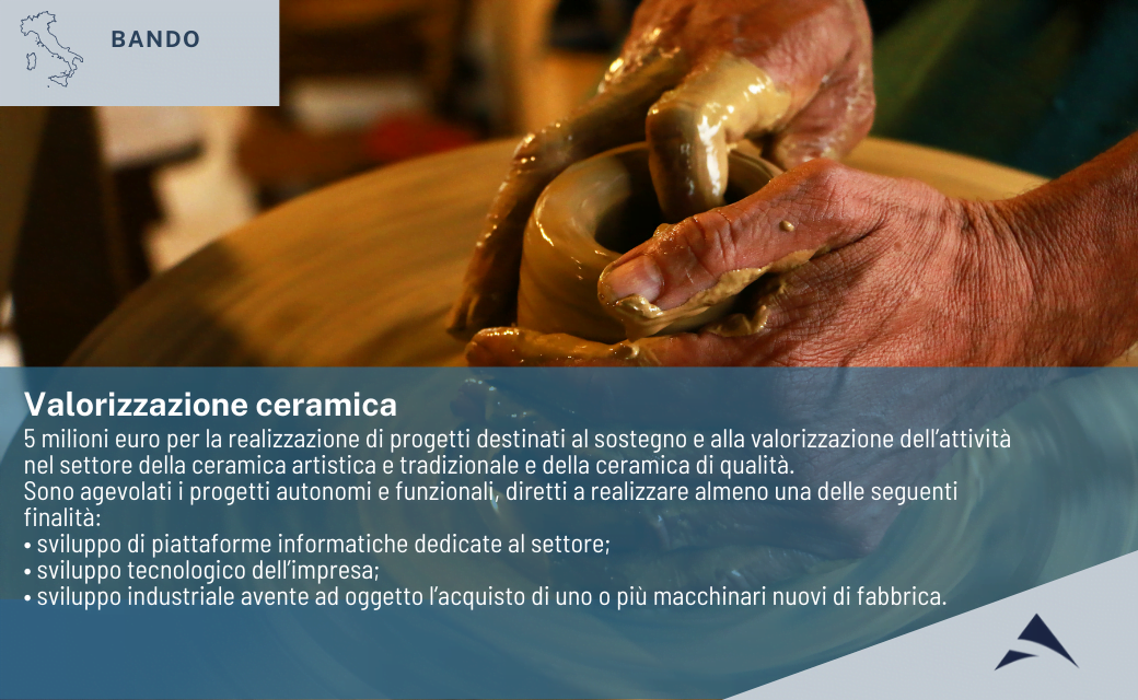 Realizzazione di progetti destinati al sostegno e alla valorizzazione dell’attività nel settore della ceramica artistica e tradizionale e della ceramica di qualità