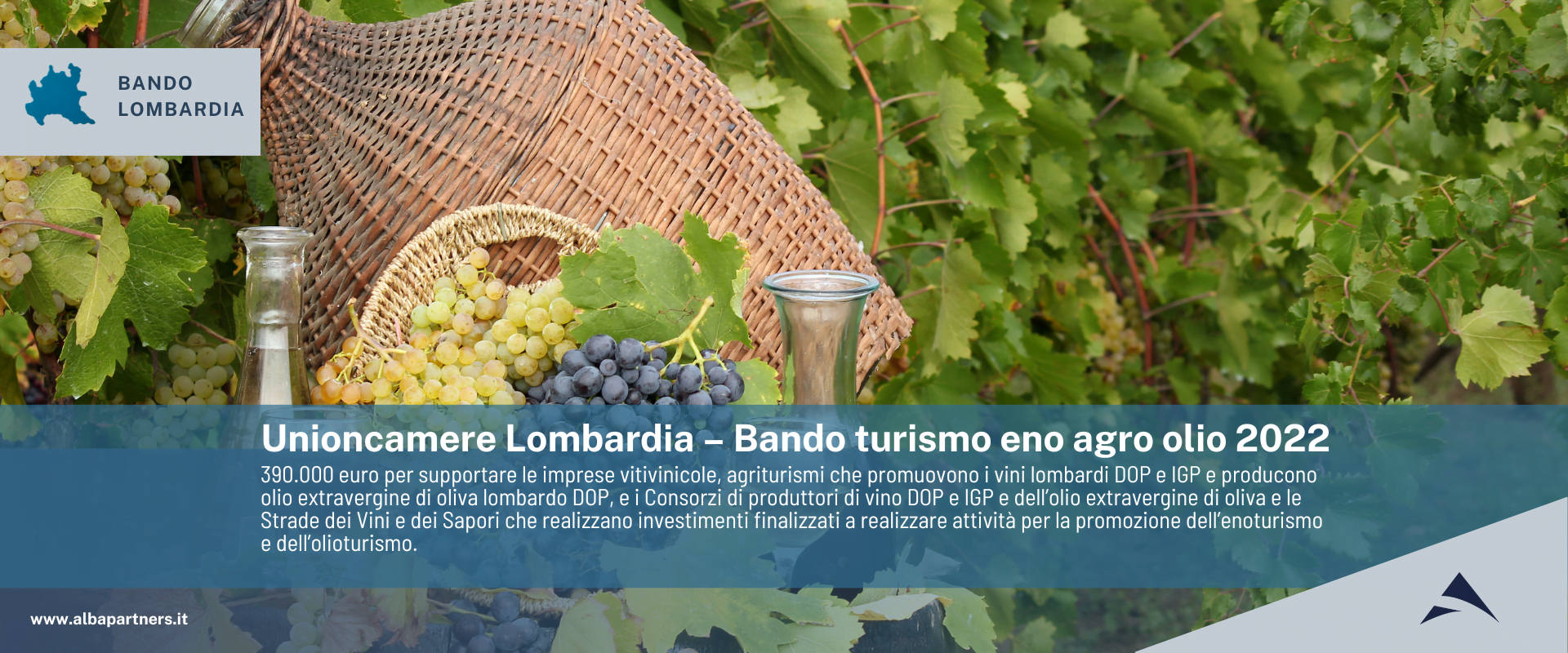 • le micro piccole e medie imprese lombarde aventi almeno una sede operativa o un’unità locale in Lombardia e operanti come imprese vitivinicole (produttori di vino, cantine), imprese agricole produttrici di olio, frantoi e agriturismi lombardi che intendono promuovere vini (DOP e IGP e olii di qualità) con i codici ATECO 01.21, 10.41.1, 11.02, 01.26 e 56.10.12 come attività primaria o secondaria;