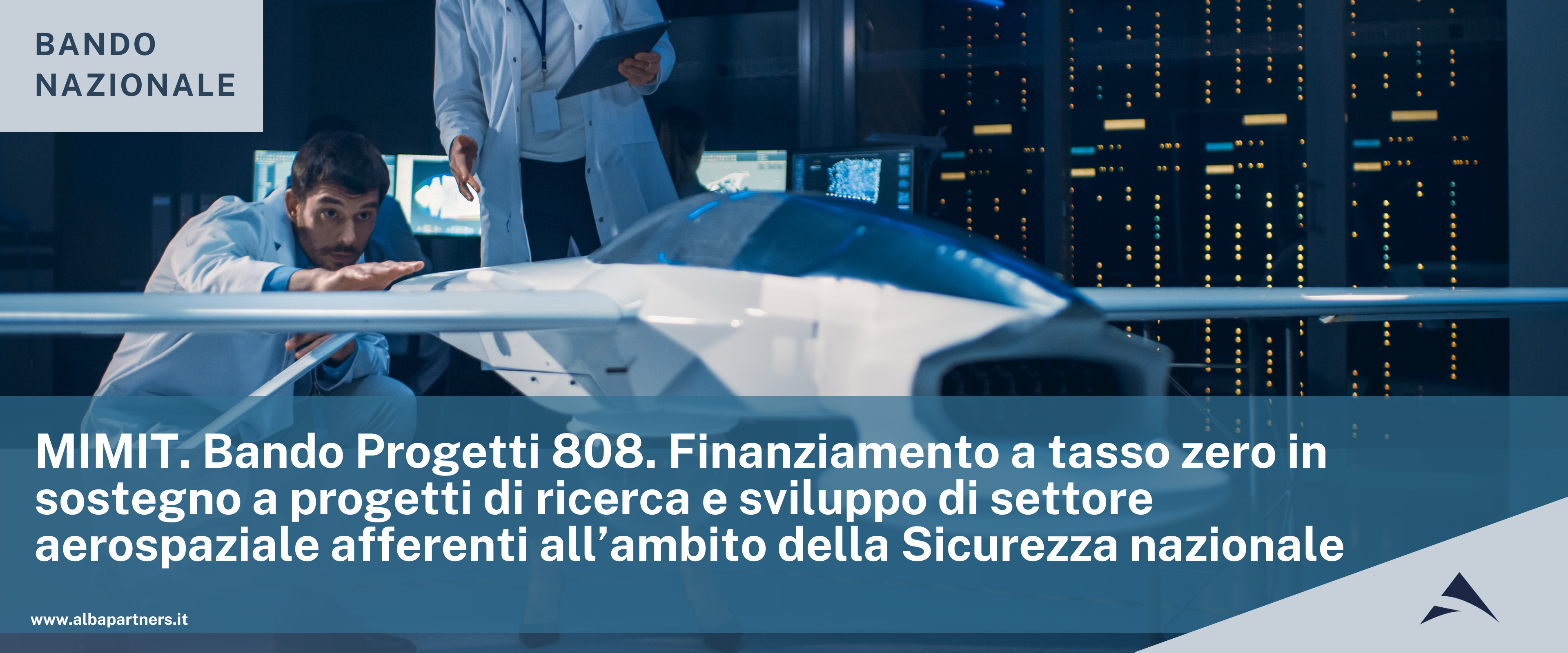 MIMIT. Bando Progetti 808. Finanziamento a tasso zero in sostegno a progetti di ricerca e sviluppo di settore aerospaziale afferenti all’ambito della Sicurezza nazionale
