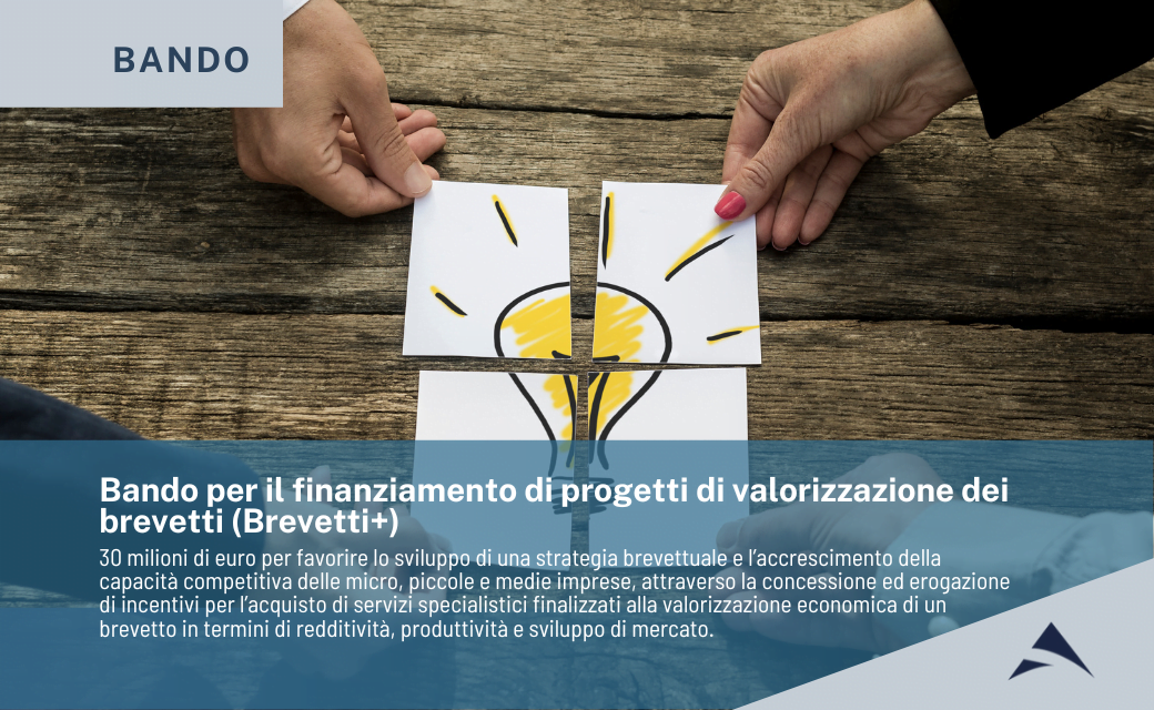 Home 9 Categoria: Finanza Agevolata ( Page 50 ) MISE – Bando per il finanziamento di progetti di valorizzazione dei brevetti (Brevetti+) Finalità L’obiettivo della misura, finanziata con 30 milioni di euro, è quello di favorire lo sviluppo di una strategia...