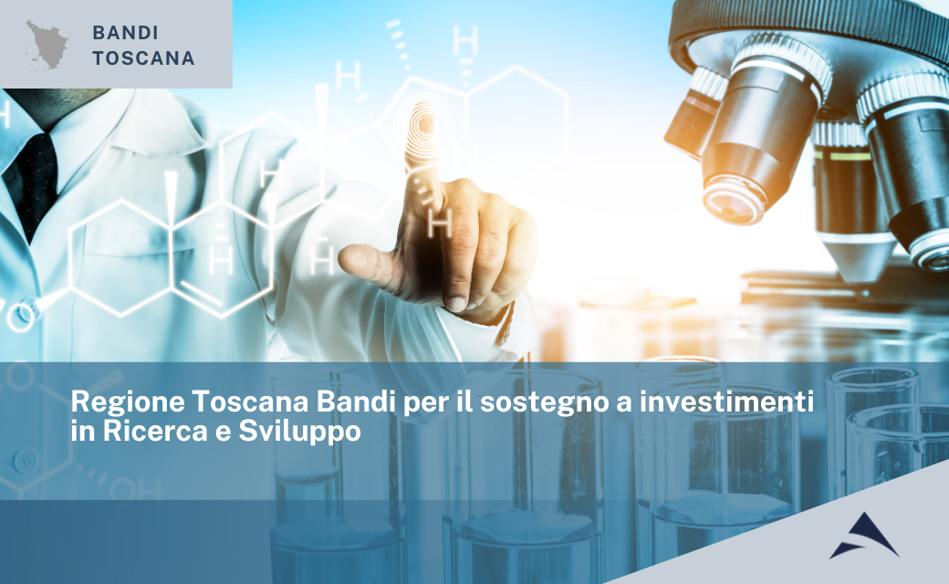 Home 9 2024 9 January Regione Toscana Bandi per il sostegno a investimenti in Ricerca e Sviluppo REGIONE TOSCANA – BANDI PER IL SOSTEGNO A INVESTIMENTI IN RICERCA E SVILUPPO Sono due i Bandi in fase di attivazione della regione Toscana che mirano a...