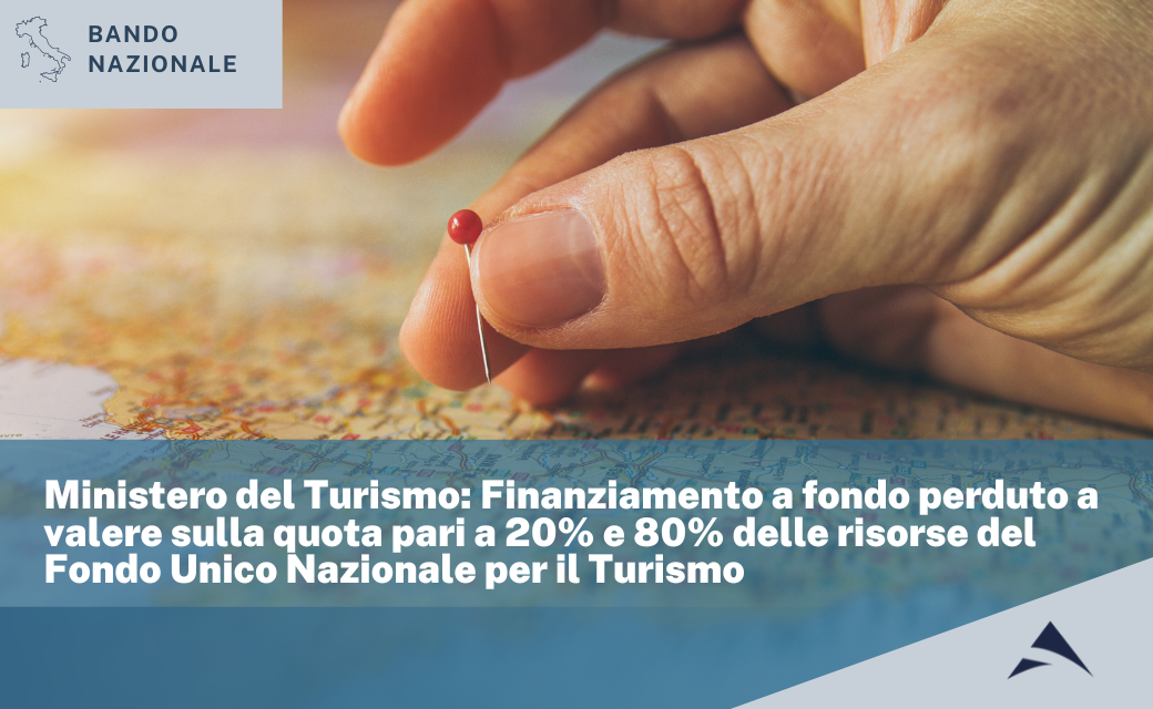 Home 9 Categoria: Bandi Nazionali Aperti ( Page 2 ) Ministero del Turismo. Finanziamento a fondo perduto a valere sulla quota pari a 20% e 80% delle risorse del Fondo Unico Nazionale per il Turismo Descrizione Bando Il bando prevede una quota di risorse...