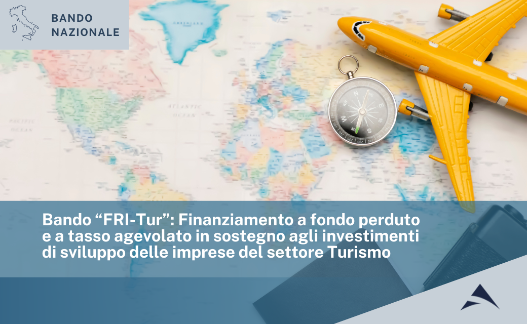 Home 9 Categoria: Bandi Nazionali Aperti Bando “FRI-Tur”: Finanziamento a fondo perduto e a tasso agevolato in sostegno agli investimenti di sviluppo delle imprese del settore Turismo Descrizione Bando Il bando definisce gli elementi utili per l’attuazione della...