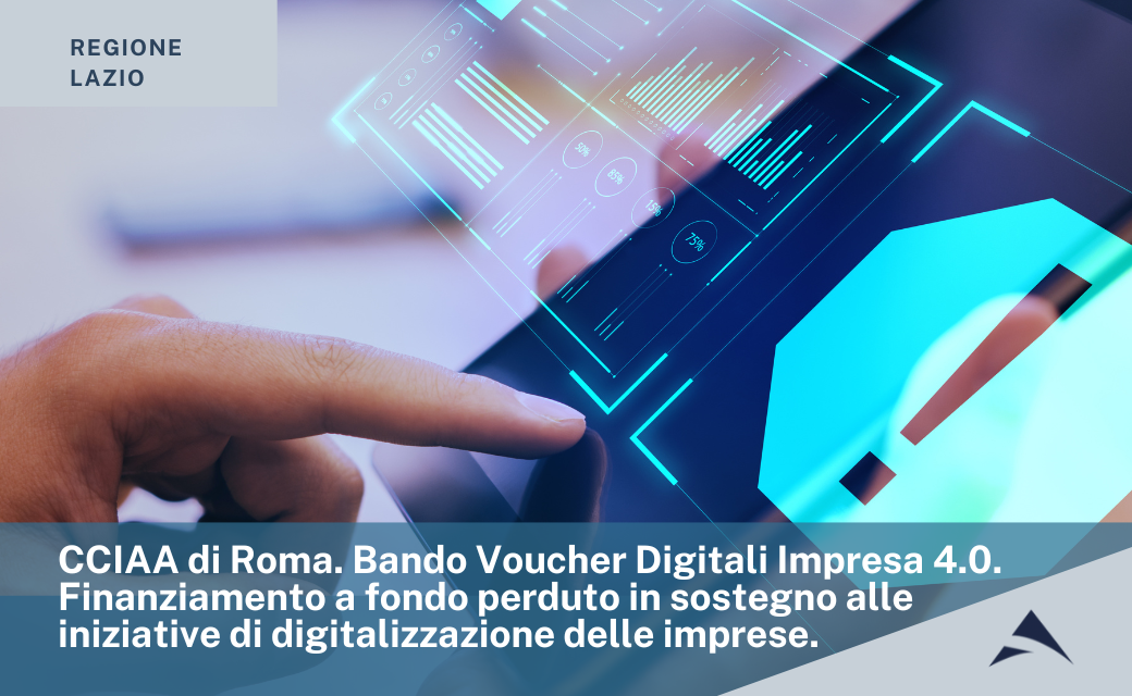 Home 9 2024 9 September CCIAA di Roma. Bando Voucher Digitali Impresa 4.0. Finanziamento a fondo perduto in sostegno alle iniziative di digitalizzazione delle imprese. Descrizione Bando Il bando ha come finalità promuovere la diffusione della cultura e della...