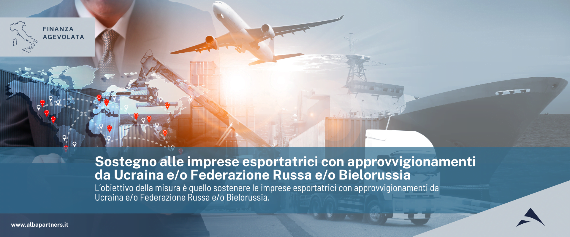 L’obiettivo della misura è quello sostenere le imprese esportatrici con approvvigionamenti da Ucraina e/o Federazione Russa e/o Bielorussia.