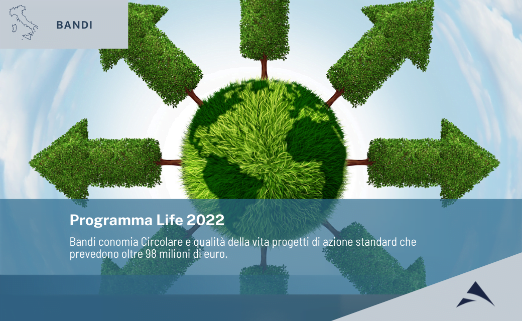 Home 9 Categoria: Bandi Europei diretti Programma Life 2022. Bandi Economia Circolare e Qualità della vita – Progetti di azione standard Scadono il 4 ottobre i bandi “Economia circolare e qualità della vita – Progetti di azione standard”...