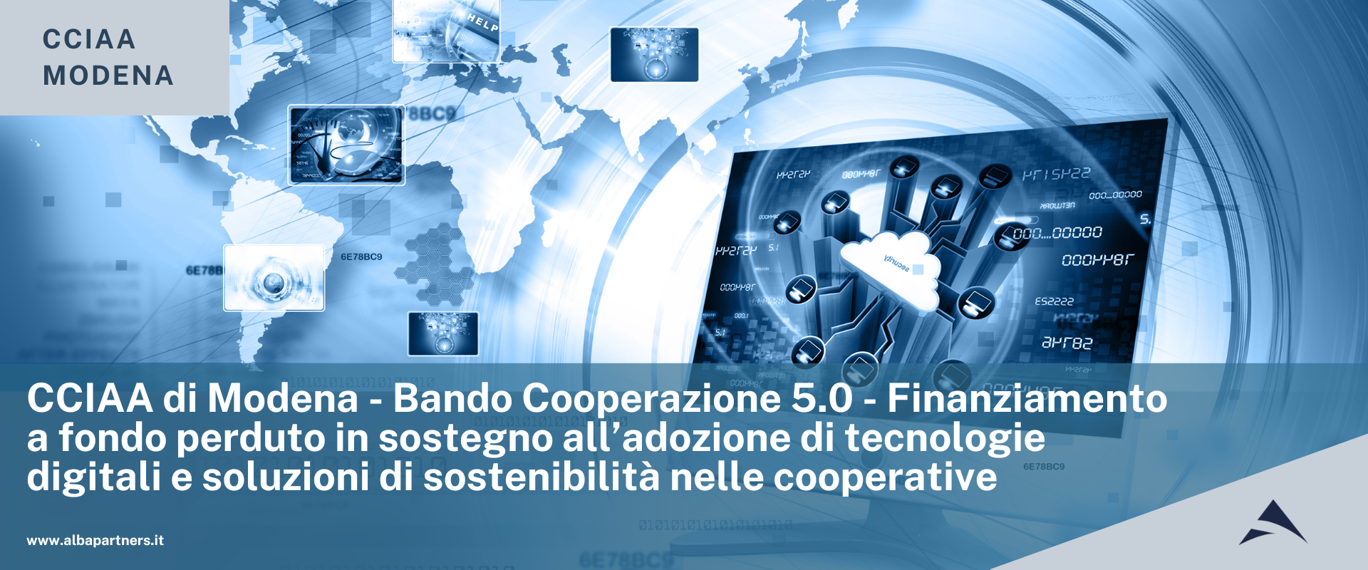 CCIAA di Modena – Bando Cooperazione 5.0 – Finanziamento a fondo perduto in sostegno all’adozione di tecnologie digitali e soluzioni di sostenibilità nelle cooperative