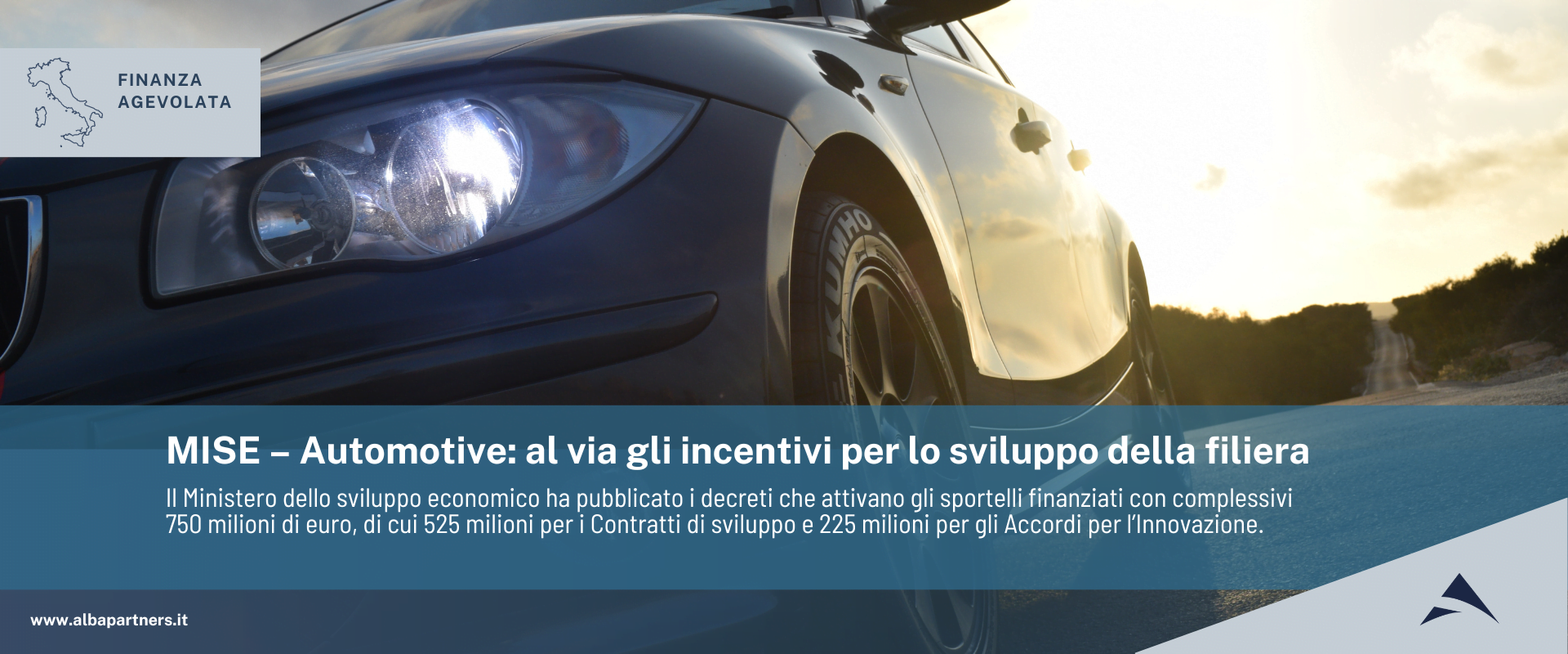 MISE – Automotive: al via gli incentivi per lo sviluppo della filiera