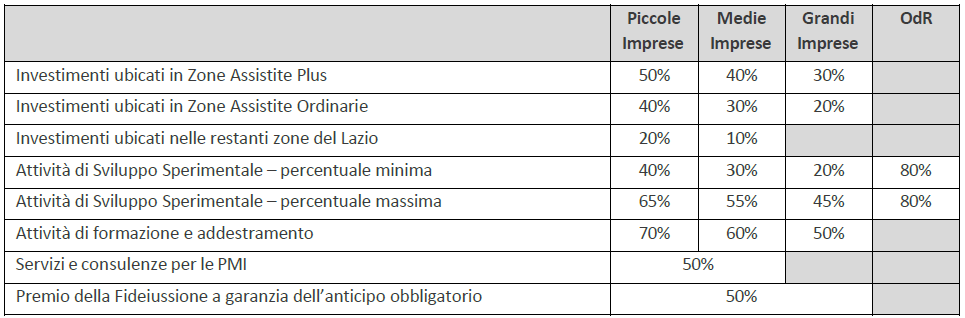 Il sostegno è destinato alle imprese, di qualsiasi dimensione, che hanno, al massimo entro la data della prima erogazione, l’unità produttiva localizzata nel Lazio che è oggetto del progetto.